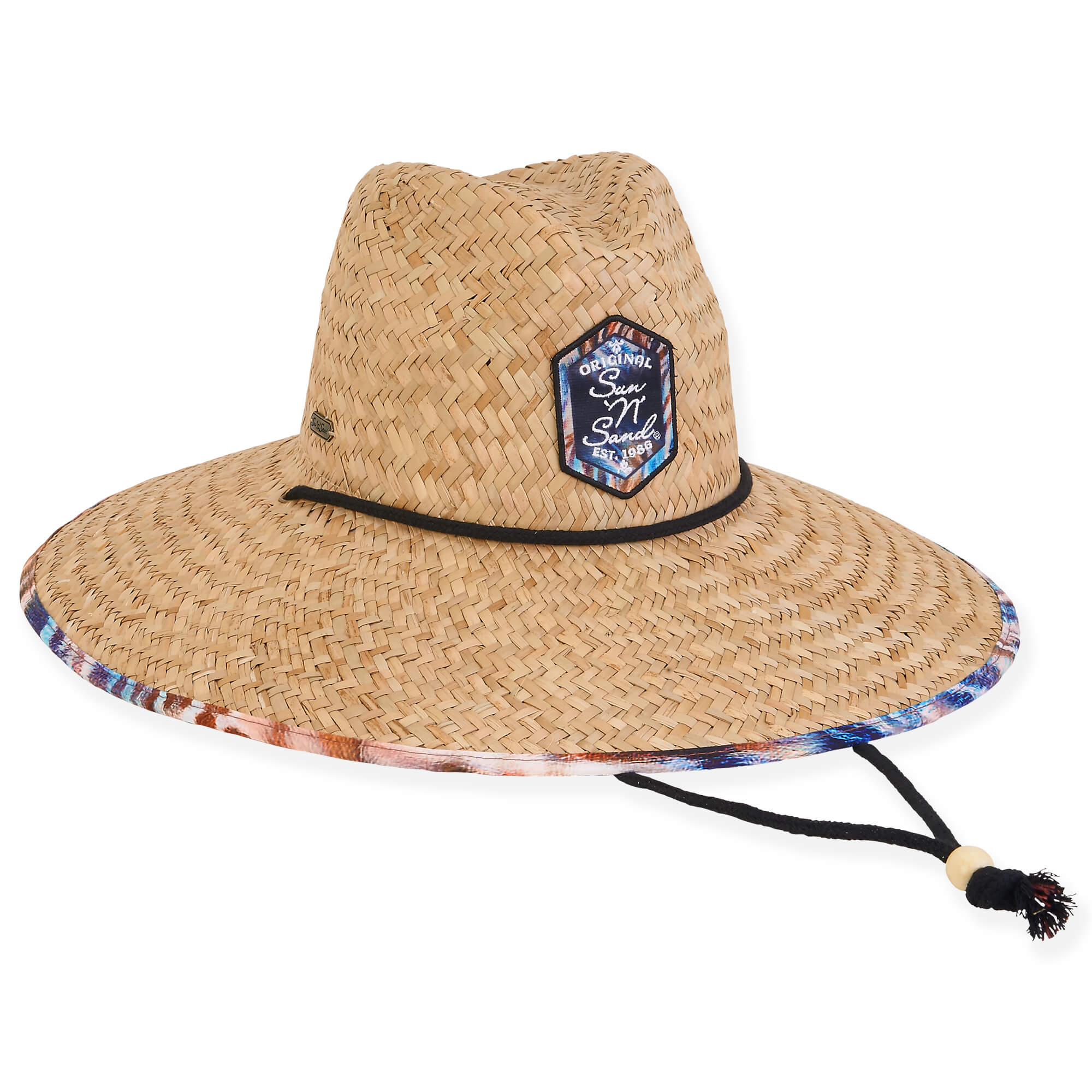 This stylish lifeguard hat made of woven rush straw with a chin cord is perfect for keeping the sun off of your face during work or play.