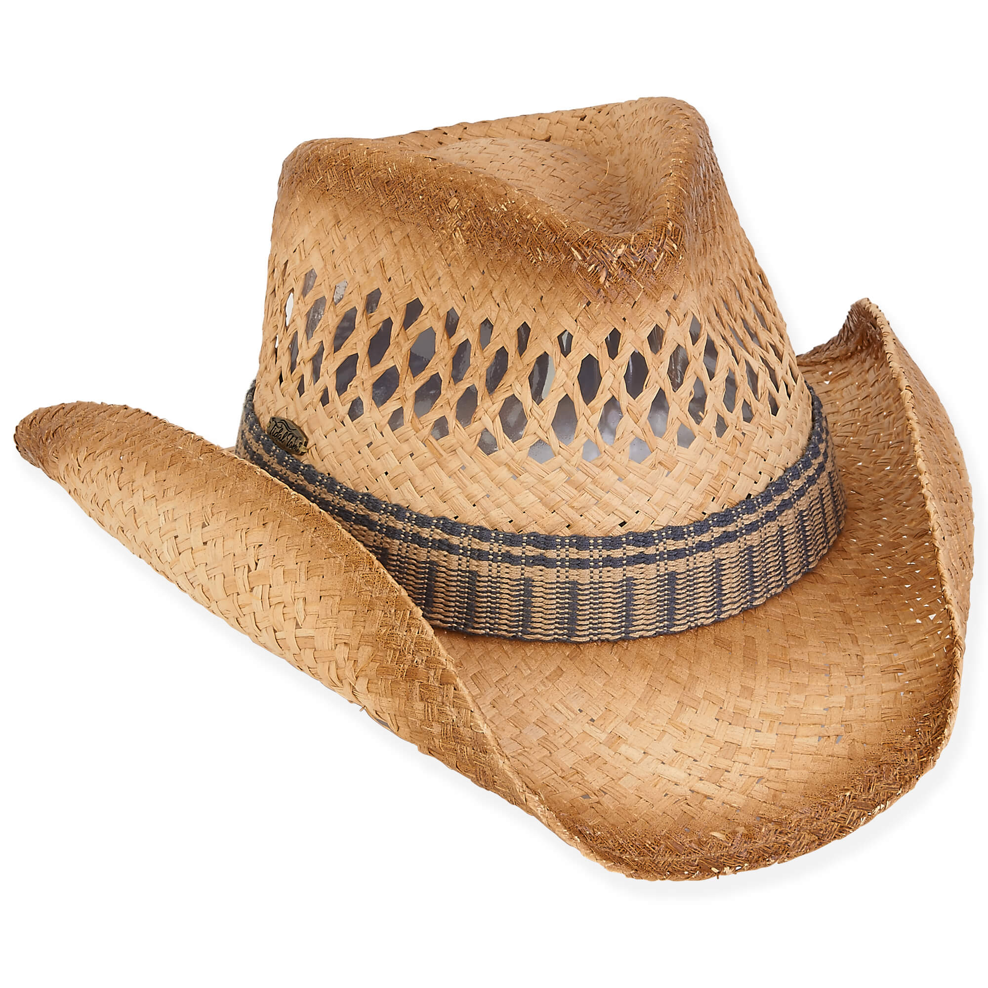 This stylish western hat made of finely woven raffia with woven trim is lasting and a perfect fit for photographs on the beach.